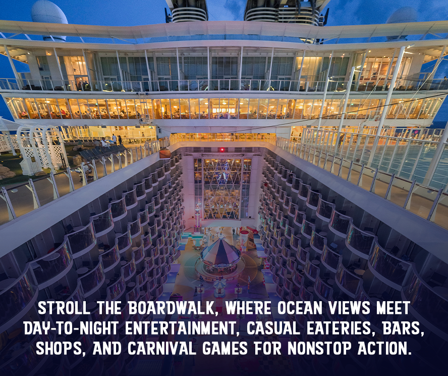 Featuring seven vibrant neighborhoods to explore, Allure of the Seas gives you the thrill of a massive floating city—while still making it easy for you and your crew to create unforgettable moments together.