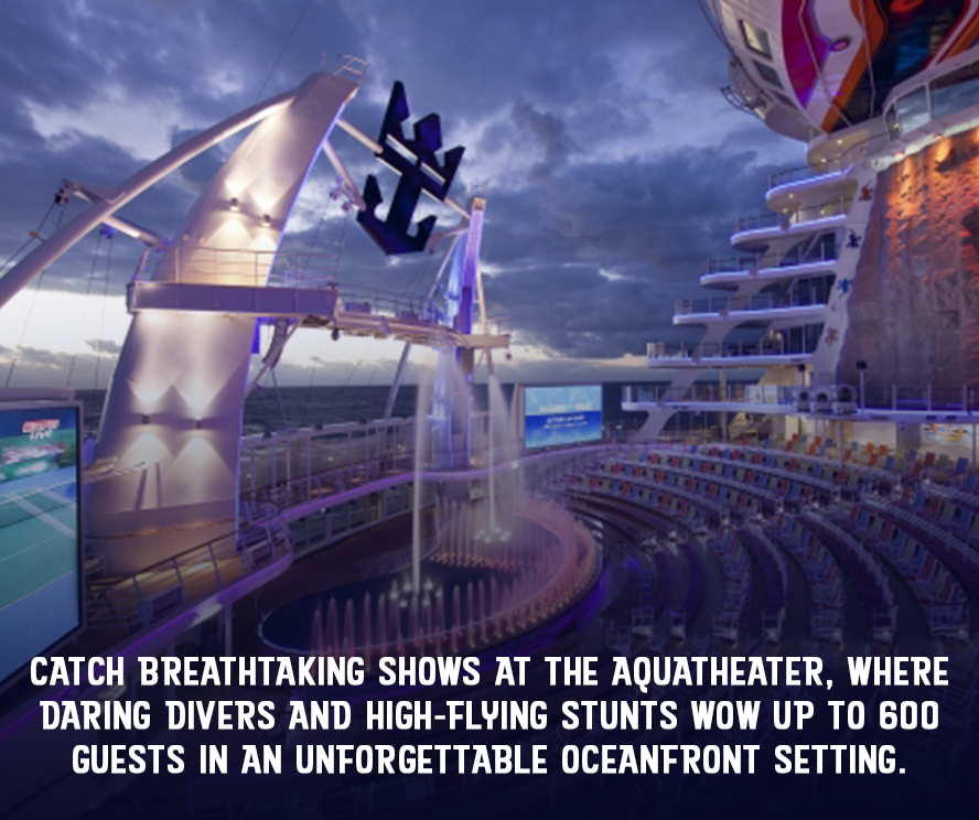 Coupled with our exclusive High Seas Rally only entertainment, Allure of the Seas delivers next-level, award-winning, entertainment at sea! From jaw-dropping acrobatics, high-dives, and synchronized shows at the open-air AquaTheater, to stunning ice-skating performances in Studio B. Add in bold original productions, high-energy comedy and adult game shows, and you’ve got entertainment on a cruise like never before!